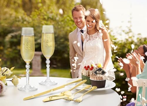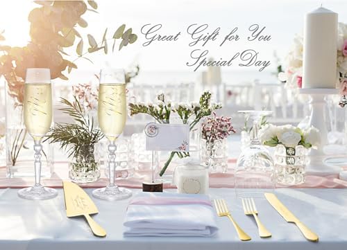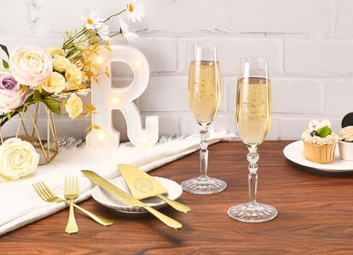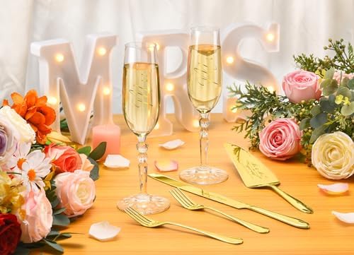 Sponsored Ad - Wedding Cake Knife and Server Set with Forks, Classical Style Crystal Champagne Flutes Toasting Glasses for Bride and Groom, Wedding Gifts for Couples, Engagement and Bridal Shower Gift