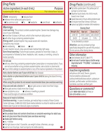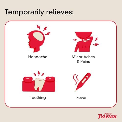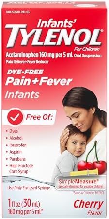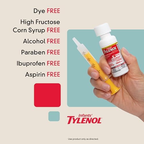 Infants' Tylenol Oral Suspension Liquid Medicine with Acetaminophen, Baby Fever Reducer & Pain Reliever for Minor Aches & Pains, Sore Throat, Headache & Teething Pain, Dye-Free Cherry, 1 fl. oz