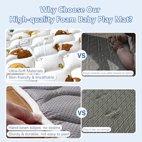 Sponsored Ad - Premium Foam Baby Play Mat 47" X 47", Thicken One-Piece Crawling Mat, Non-Slip Cushioned Baby Playmats for Infants, Babies, Toddlers - Machine Washable for Easy Care