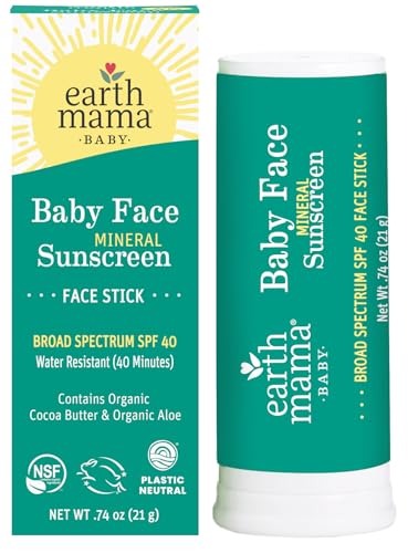 Earth Mama Baby Face Mineral Sunscreen Stick SPF 40 | Non-Nano Zinc, Contains Organic Cocoa Butter & Aloe | Babies, Kids & Family 0.74-Ounce
