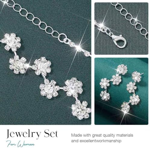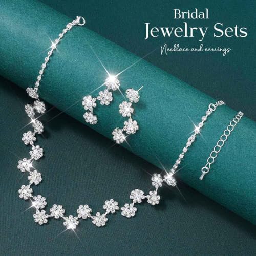 Unicra Silver Rhinestone Bridal Wedding Jewelry Set Crystal Necklace Earrings Bracelet Sets Formal Costume Jewelry for Women and Brides